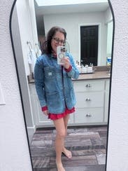 I would have loved to have worn it but ran out of time and the weather never got cool enough. I’d say size up for a baggier fit which I think looks cooler than it being too small and fitted. I could see it over a great short, fall patterned dress and boots. It was brand new with tags!