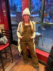 Super comfy and cozy! You can dress it up or down. If you’re short like me, you may need to roll up the pant legs or tuck them into your boots a little bit. I went up 1 size just to be more comfy with layers underneath and adjusted the straps. Just right!