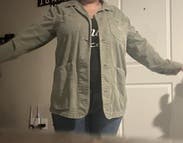 I received this jacket brand new with the tag still on. I wore it on a trip to Vancouver and it fit the fall vibe perfectly! Also great for the plane. It's perfect for casual and travel outfits. It would be good for early fall, since it's not thick at all. For sizing, it went down to my mid-thigh and I am 5'8 with a shorter torso. I could have probably sized down, but I don't mind an oversized look.