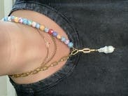 The gold paperclip style chain ended up drawing my attention more than the colorful beads, which was surprising. It was a light weight and comfortable necklace, though it felt a bit chunkier than I had expected