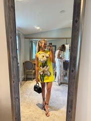 If this dress wasn’t almost $800, it would be in my closet! The detail is stunning!! I needed a special yellow dress for two occasions and this fit the bill. I could have probably gone down one size but it was still lovely. It is a roomy sheath. Would absolutely rent again!!