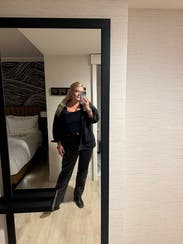 Rented these Levi’s (size 28) and they fit perfectly. True to size — they hit right at the waist with an easy straight leg that feels relaxed but still tailored. The denim has a sturdy, structured feel without being stiff, and the length works really well with a heeled boot. The stud detailing runs in a subtle wave pattern down the leg — it adds some personality without being too flashy. I loved styling them with a simple black top and poncho to let the embellishment stand out. If you’re between sizes, stay with your usual — the waistband has just enough give to stay comfortable all day. Highly recommend these if you want a classic shape with a little edge.
