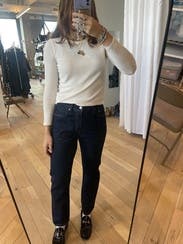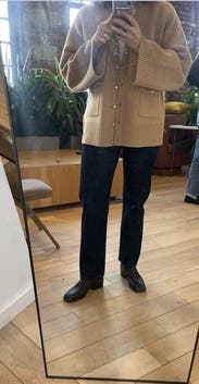 Love, love, love these jeans. Such a classic look--straight-leg, mid-rise, and dark wash. They are pretty structured and do not have much stretch so if you're in between sizes, I would size up! Great piece to add into your everyday denim mix.