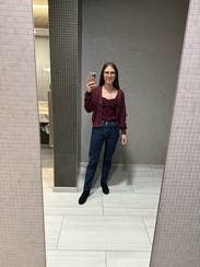 I loved the look of these jeans and they fit, but I should've sized up to be able to sit in them more comfortably. I'd get them again in the next size. Good to dress up or down.