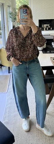 I’ve tried a few pairs of barrel jeans and always felt pretty meh about them. But these are something different and special. Something about the 2-tone, plus the cut of the waist, makes them really stylish and flattering. I found myself reaching for these jeans over and over again.