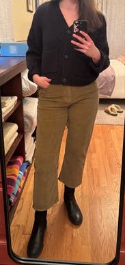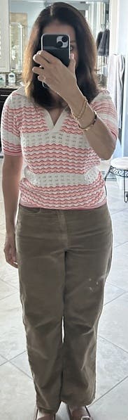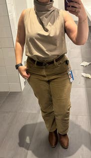 It’s hard to find corduroy jeans that fit right. This one came close. Perfect in the waist, hips, and length. But the straight leg cut was unflattering.