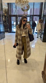 Great color. 70's vibe - but a bit tight around the waist when I sit down