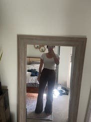 These brown flared Levi’s were a total wildcard—and that’s exactly why I rented them. I wanted something different, and they delivered. The high waist, the pocket detail, the not-my-usual vibe? So good. They pulled together a full monochrome moment and felt like a nod to vintage without trying too hard. That’s the beauty of renting—you get to play. More looks → @the.nay.edits