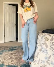 I have like zero jeans that fit right now bc I’ve been losing weight but these were great! No stretch at all which I love and a fun wide leg. Definitely going to be wearing these on repeat for a while