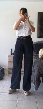 I am short! 5’2” so I did expect these pants to be long so I have been pairing them with platform sneakers and heeled boots. The dark wash is flattering. Rib cage means it hits you at your ribs, or at least should. Wide leg is fun and trendy. These jeans came brand new with tags so that was a plus!