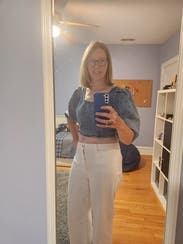 Top is cute, but a little awkward between the fit at the rips and sleeves, but got lots of compliments.