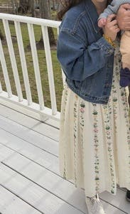 This is an unusual shaped jean jacket cropped not shrunken and even loose and extra through the shoulders. It pulls in at the waist very nicely. I really like it but I avoided the whole trend the first time circa 2000. Not that it ever really ended for some. People have been wearing the tight on the shoulders gap jean jacket to this day…. So not sure if I can be a jean jacket person but this is really cute and a different style entirely. I hope you like it as much as I do.