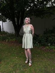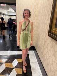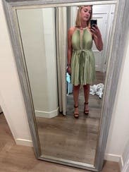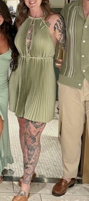 This was a fun dress to my pickle themed birthday party. The back is very open, so be sure you tie the dress appropriately to make sure you're secure. I also wore sticky Cakes covers since there is no way to wear a bra with this dress.