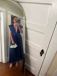 Gorgeous dress that I think works best on people with longer torsos. The waist was a little tight on me, but the top was too big. I’d go true to size on this, maybe one size up, because it gives you more support in the chest. Or for gals who don’t need support!