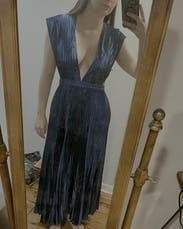 Blue (100% Gigh-Grade Pleated Polyester). Gowns. Plunge Neck. Sleeveless. Back zipper closure. Shoulder to hemline length: 54.5". Imported.