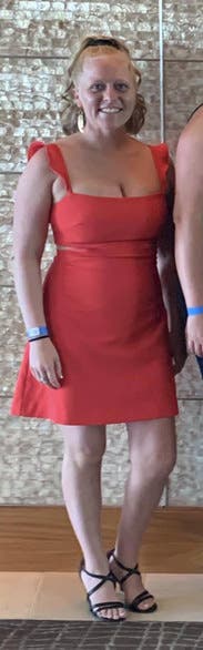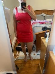 Wore this to a beach wedding, really was in between a flowy dress and this one. It looks short in the photos but it was perfect length, zero butty cheeks were out. This was my “come back” dress and it looked great! Would 100% rent again