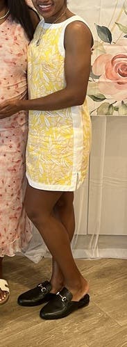 I love these outfits that Lilly Pulitzer is doing with the short built-in. You don’t have to worry about bending over and potentially shocking others. This particular outfit ran very large I thought. It’s hit or miss with Lilly. Some run really small and others run very large. Very bright, vibrant yellow. If there was a Con to the above Pros, I would say that it’s having to unzip and take the dress completely off to go to the ladies room.