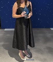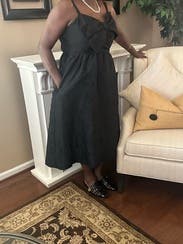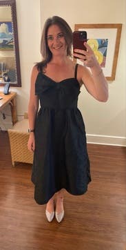 I loved this dress and it was perfect for a recent “creative black tie” wedding I attended. It was very comfortable and flattering (and has pockets). I went with the size 4 instead of 6, I as I have a small bust and felt the smaller size fit my chest better. I got tons of compliments on it and honestly wished I could have kept it.