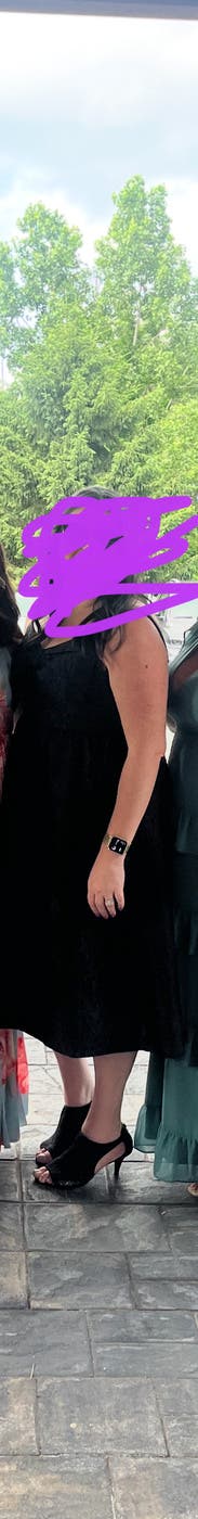 I’m obsessed with this dress! Easy fit because of the ruching in the back and adjustable straps. The texture and subtle floral appliqué make it so chic, the bow is adorable, and the fit is perfection. It came to my waist perfectly and I got so many compliments. Bonus points because it doesn’t need to be ironed!