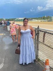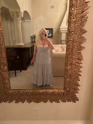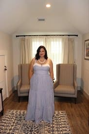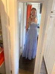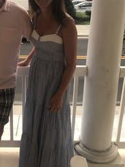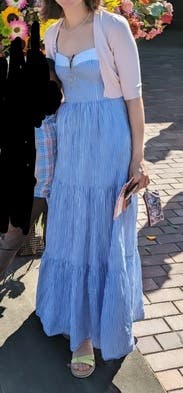 I got a ton of compliments when I wore to a nautical-themed rehearsal dinner. The top is very stretchy and forgiving but I felt provided enough support to go without a bra. It is very long so I had to hold the hem when I was walking and on stairs. But overall very cute and would rent again!