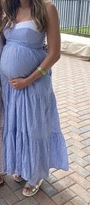 This dress was everything I could have imagined and more. It isn't a maternity dress but fit my 23 week belly perfectly. I would recommend it to anyone and rent it again!