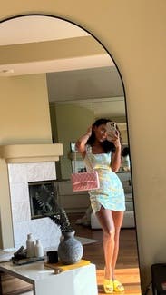 Wore this multiple times for every day this summer. It’s a little shorter than mid thigh (I’m 5’4”) and super cute. Great for the hot south Florida weather. Sized up from a 4 to a 6 and it was loose enough to be comfy but couldn’t sized down. Dressed jt both up and down with the shoes and jewelry for different occasions. This pic was during a stay at home type of day (errands, school pick ups, etc)