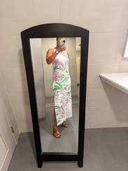 Loved the color palette and pattern of this dress and received multiple compliments. However, the fit is rather boxy, so it's not the most flattering!