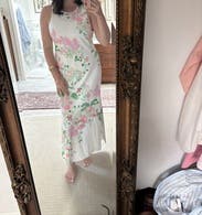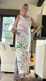 I love this dress! The fabric is excellent quality and I loved the pattern with its vibrant pink flowers against the crisp white backdrop. The side slits give it great movement and make it easy to walk in without restriction. Feminine, fresh, and flattering—this is the perfect summer dress for daytime events or warm evenings out. I loved it so much I bought it!