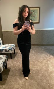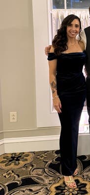 I wore this to a black tie wedding in NYC. I was very happy with the dress, and thought the velvet looked really nice in person. I was surprised there was some boning in the corset which I couldn't really see in the model photos, and the sleeves sat much lower on me, but it was a great dress. I'm 5' 4" and was wearing 3" heels.