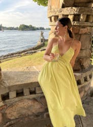 This plunge neck maxi by Line + Dot is simple and sexy when you style it with heels and a statement clutch.