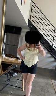 Loved this top so much! Got lots of compliments and it was comfortable to wear. The tie in the back helps you tie it to however tight you need it. V in the front was very flattering.