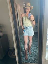I wore this to a country concert on a hot day and paired it with white cowboy boots. It was adorable! I wore a bralette under it so it wouldn’t be as revealing in the back