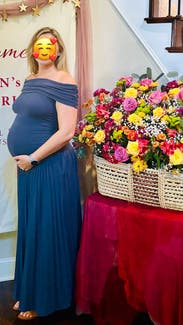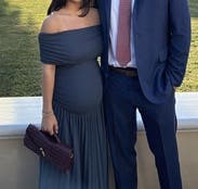 This dress is super comfy and great for any event with your baby bump. I got loads of compliments. The only thing that was a little annoying with the dress was the off-the-shoulder top part riding up every now and then, but otherwise the length and fit were great.