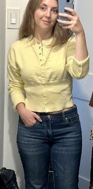 This sweater was such a sweet burst of sunshine. It was such a cute fit if you're looking for a little tight cardigan. I will def be renting again in spring!