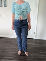 Loved this top! Fun, cute, flirty top. Wore it with some higher wasted pants and was cute. If you're a belly conscious girly just be aware that it's open at the bottom so it'll more than likely show, but loved the fit of this!