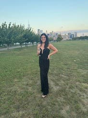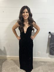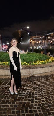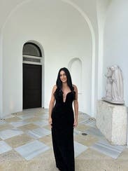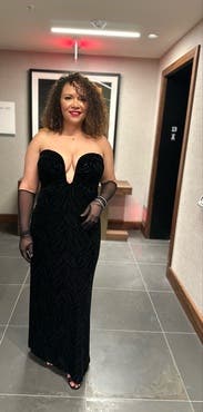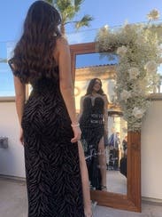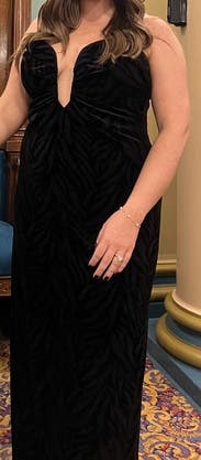 Loved how this was still a formal black gown, but the neckline and pattern made it feel a little more elevated and different. The top for me ran a little big so I was pulling up the dress throughout the night, but it wasn’t anything horrible.