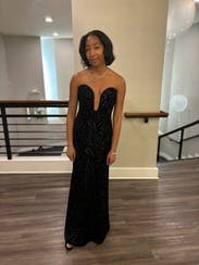 This dress fit very well. I ordered a 14 but had to size down to a 12. I could not see the sliver as it looks black with some silver shimmer. I used fashion tape just to feel secure but, the dress did not I’ve all night. It’s definitely a must rent!