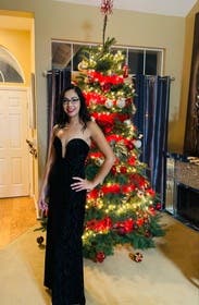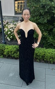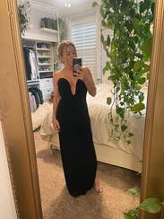 This dress was perfect for a black tie wedding! I’m only 5’3” but the length was perfect without needing any hemming. I was able to wear heels AND flats later in the night without tripping. The boning that holds up the dress is also a MAJOR plus!! I was pleasantly surprised when I tried it on to find that there was boning to keep the top of the dress in place and it helped give me the most beautiful hour glass shape. I couldn’t stop getting compliments! I felt like a million bucks in this dress and am so happy I rented it!! I’m usually a 12/14 on top, but can be closer to a 14/16 on the bottom because of my thighs and hips. I went with the 16 so the dress wasn’t too tight on my stomach and I felt comfortable even after drinking/eating!! I didn’t want to take the dress off at the end of the night. It was just stunning!!