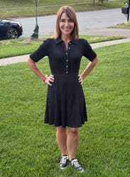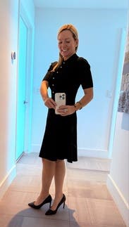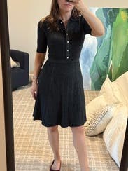Arrived new with tags! This dress has give making it easy to move in. I styled down with some sneakers and chunky accessories for a night of live music but you could easily wear to the office with heels, too. This designer loves their pearl buttons! Added visual interest for this dress. Would rent again.