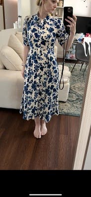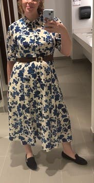 I loved the cut of this dress. Wore for work a couple times. The middle button was a little tight but otherwise such a nice fit and pretty fabric. Would buy if it wasn’t so expensive!