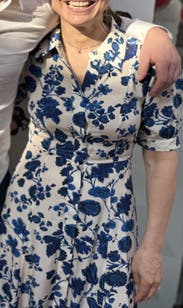 I wore this to the Friday dinner at my spouse’s college reunion and received so many compliments! It’s difficult to pick something “nice” casual for an event like that, especially in scorching weather. The dress is beautiful, the silk fabric is light yet has great “hand," it drapes and flows rather than being too light. The pattern is even better in person than in the photos. I was worried that the shape would be matronly but it wasn’t—not to young, not too mature. It came off sporty yet upscale.