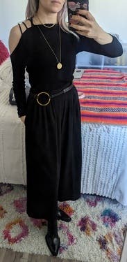 It was an easy black shirt to pair with some fun colored jeans to go to a bar. Nothing special but sometimes you just need a plain black shirt! It was comfy as well.