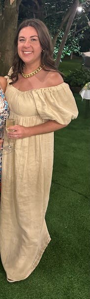 I needed a comfortable dress that fit the winery feel but was still casual enough for everyday sandals. This dress was perfect. I chose to wear the medium due to the large being a little too big in the bust. While the medium fit great it did seem a little tight (I almost needed a medium and a half). I also wanted to wear it off the shoulder but felt like my broader shoulders with the super puffy sleeves wasn’t flattering. A strapless bra is a must have for this fit, and also keep in mind that neutral underwear is also needed (while the dress isn’t see-through, you could easily tell if you were to wear bright undies). The dress is quick to wrinkle but also quick to lose those wrinkles and with the linen material it’s a great summer-fall transition piece! Overall I’m very happy with my selection!