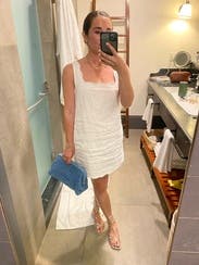 Loved this clutch. Blue is my neutral, so it went with everything. Perfect for day or a casual night