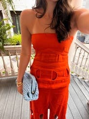 Got tons of compliments on this lined clutch. Very springy/summery. It doesn't hold its shape, so if you want something structured, this is not for you. I also found the crossbody chain useless, but again, this was not a big deal to me.