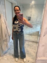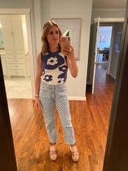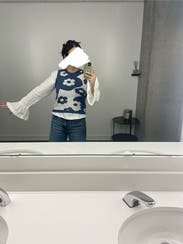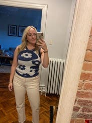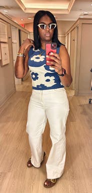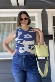 The comfiest, cutest sweater tank ever! Seriously SO SOFT with a nice, thick high-quality weave. I live that bra-free life and had no problems with anything showing through. For being a sweater, it was surprisingly comfortable on an 85 degree day (though I wasn't out in the sun for extended periods). Perfect TTS fit and could dress up quite well for the office. 10/10 will rent again!