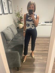 I wore it to work with a Nicole Miller skirt I purchased a couple of years ago from RTR. So many people complimented me on the vest! I definitely want to wear it again before I return it. It runs true to size. (Ignore my "makeup gone, tired from a full teaching day" photo and just look how cute the vest is. Ha!)