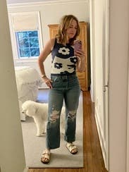 this standout knit shell throws major hippie vibes. fitted but runs true to size. pairs well with the checkerboard boyfriend jeans by R13.