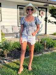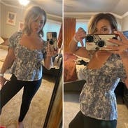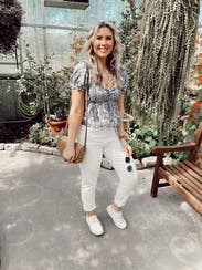 This top is so flattering and is perfect to wear with white denim or a skirt. The smocked chest and puff sleeves fit me well and I got so many compliments on the pattern.