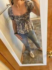 Super cute top! Wore with high waisted white jeans and got so many compliments. Super flattering, would rent again!